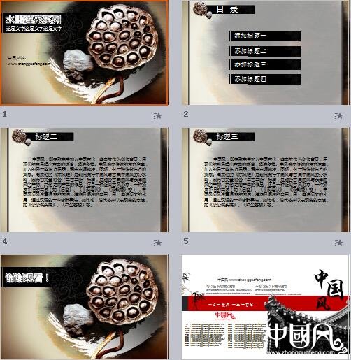 这是一份中国风动态墨莲PPT模板,小编提供幻灯片免费下载,PPT封面用墨莲作为背景图片,风格独特。PPT内容页使用了很多中国风的元素作为点缀,如:国画、水墨画、墨迹等作为点缀元素。喜欢中国风PPT模板的朋友可以下载观看。